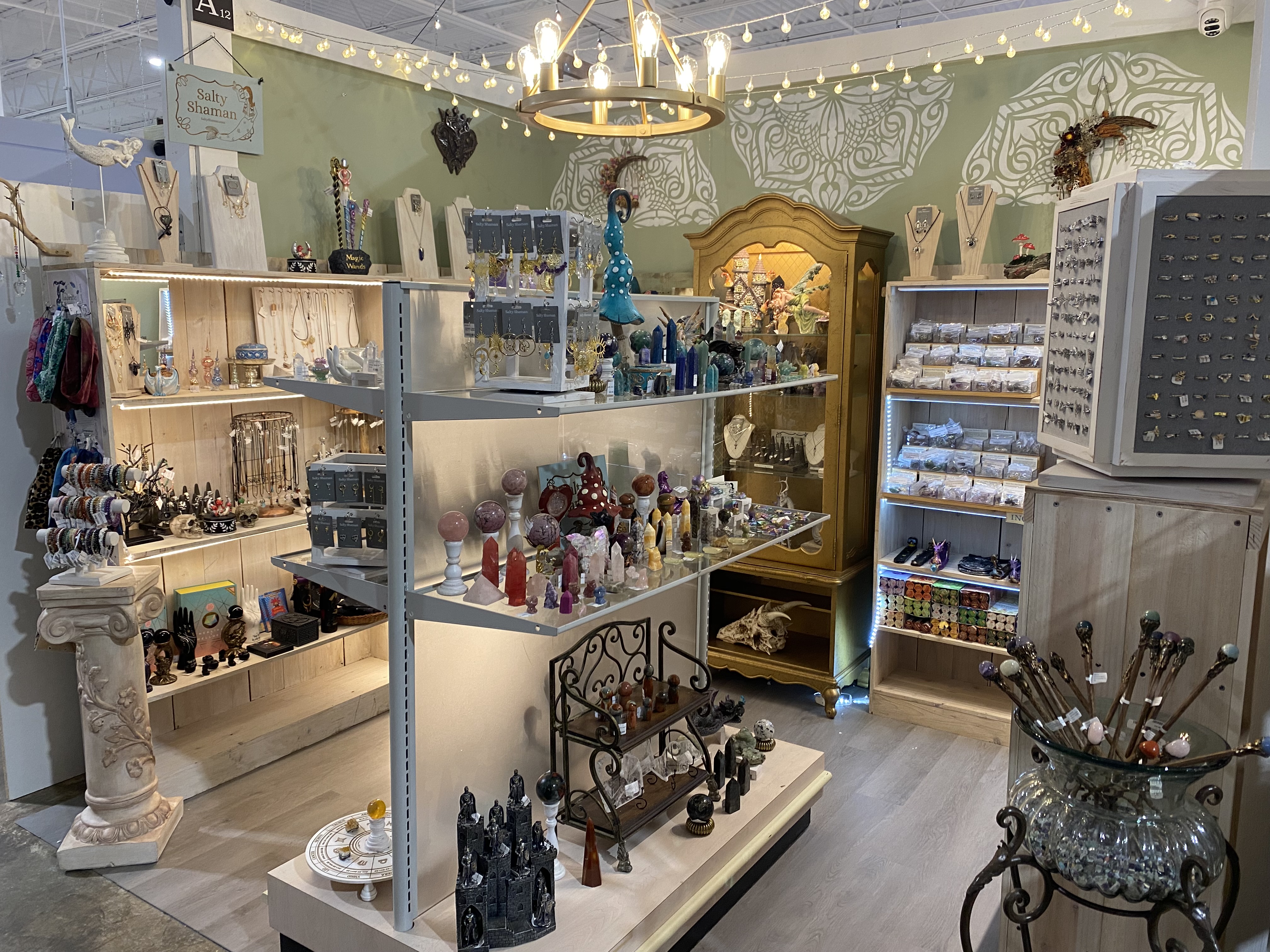 We operate a little differently than most. Rather than a traditional storefront, Salty Shaman sets up booths within select thrift stores and boutiques. This unique model keeps overhead low—so we can pass the savings on to you. It also allows us to stay rooted in the local community, bringing magic to unexpected places.